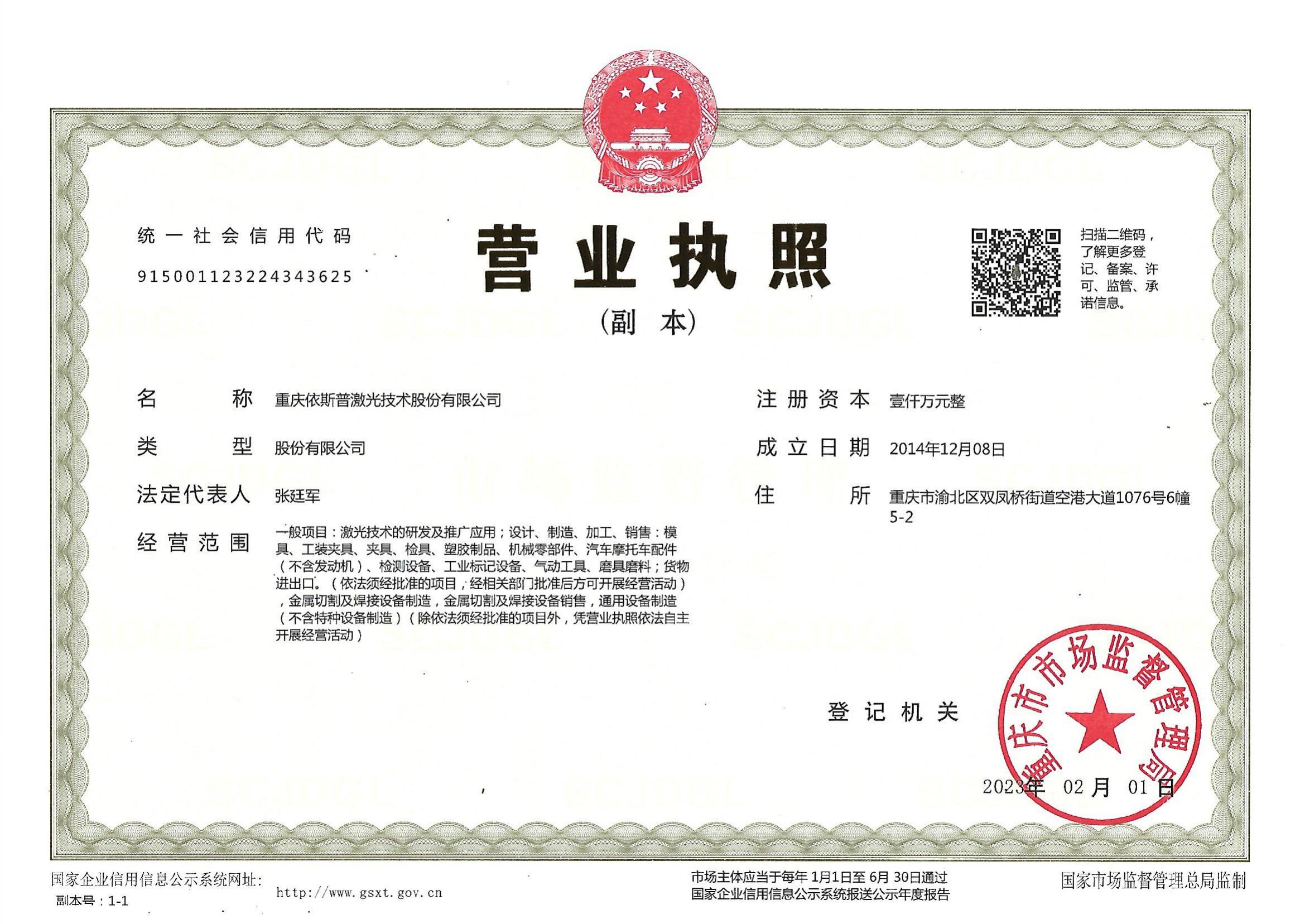 重慶依斯普激光技術(shù)股份有限公司 是一家科技型高新技術(shù)企業(yè),公司位于重慶市渝北區(qū)空港大道1076號(hào)置尚金冠工業(yè)中心,占地面積約五千平方米,吸收了國(guó)外的先進(jìn)的技術(shù),專業(yè)研發(fā)、制造和銷售各類激光控制技術(shù)應(yīng)用類產(chǎn)品。公司被評(píng)為創(chuàng)新基金重點(diǎn)培育企業(yè),專精特新企業(yè),通過(guò)了ISO9001質(zhì)量管理體系認(rèn)證,產(chǎn)品多次獲得重慶市高新技術(shù)產(chǎn)品證書及實(shí)用新型專利證書等。 依斯普激光的主導(dǎo)產(chǎn)品為激光切割機(jī)系列、激光焊接機(jī)系列,激光打標(biāo)機(jī)及氣動(dòng)打標(biāo)機(jī)系列等,廣泛應(yīng)用在